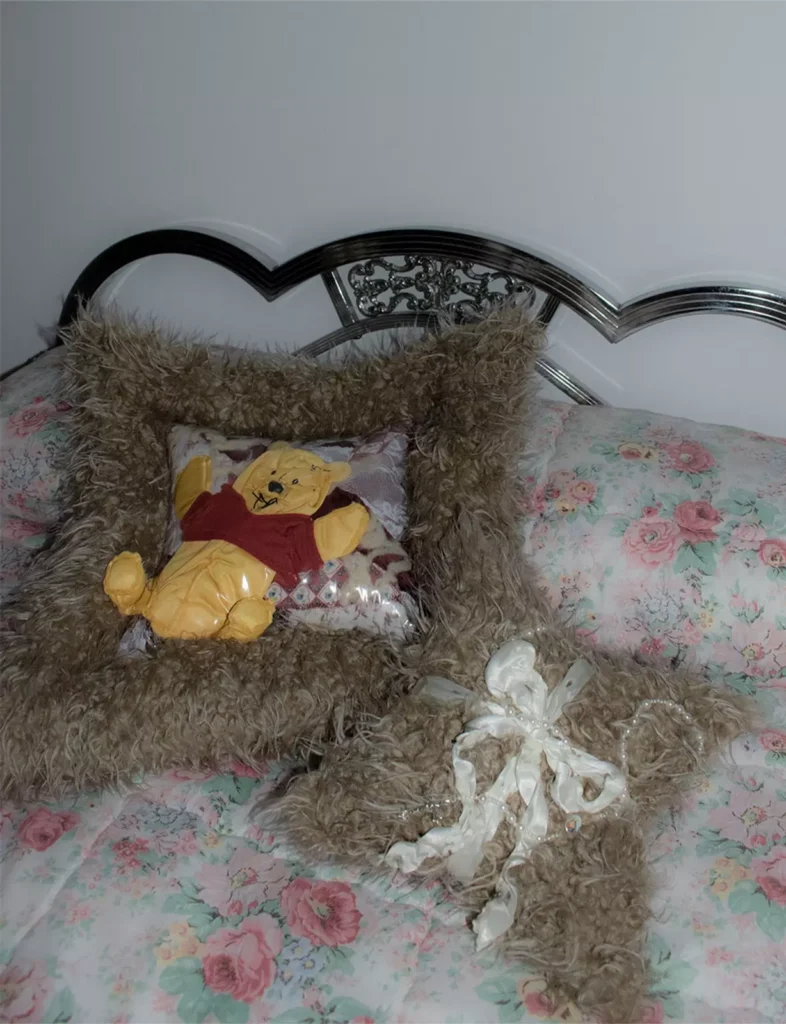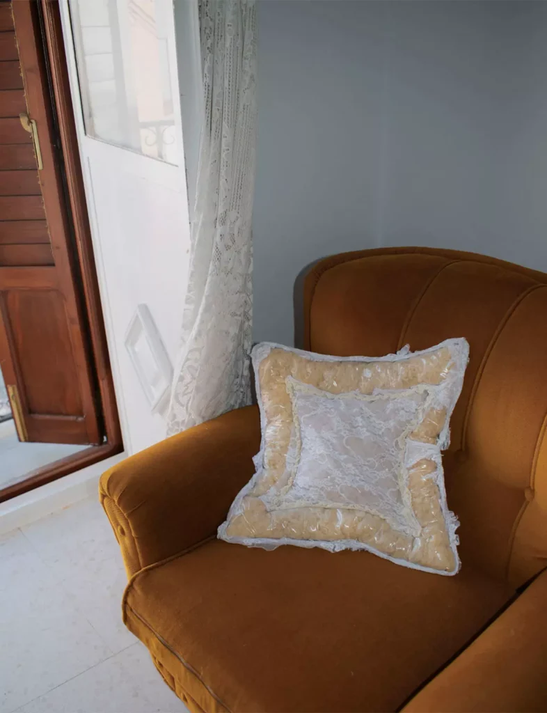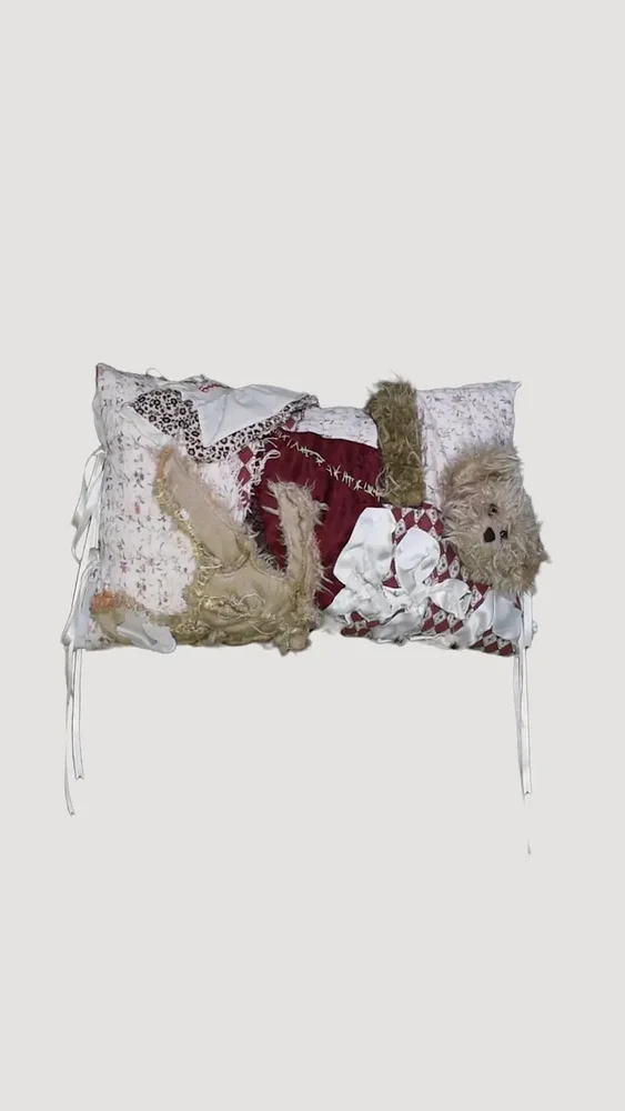 Nostalgia es una serie de cojines creados como una pequeña colección que fusiona lo naïf con la memoria material. Su propósito, como línea de objetos para el hogar, es dotar de funcionalidad a piezas decorativas que surgen de ideas conceptuales. Cada cojín fue creado a partir de elementos diversos, como peluches, cromos vintage y tejidos reciclados.